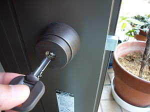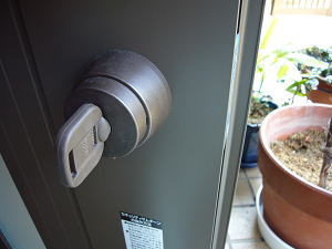 家アイコン本来は防犯用に使用する鍵を、お年寄りが夜中に勝手口から外出して徘徊するのを防ぐために取替えをします。 勿論、玄関にも取り付けることは可能です。